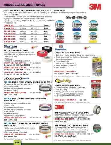 chemicals & water • PVC backing • Non-corrosive, rubber-based adhesive ORDER NO. 322-200782 Mfr. No. 200782 Description: 3/4" x 66' Black, EV 057B