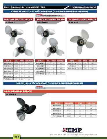 FIXED (PRESSED IN) HUB PROPELLERS JOHNSON/EVINRUDE JOHNSON 150-300 HP • 4-3/4" GEARCASE (15-SPLINE & THRU HUB EXHAUST)