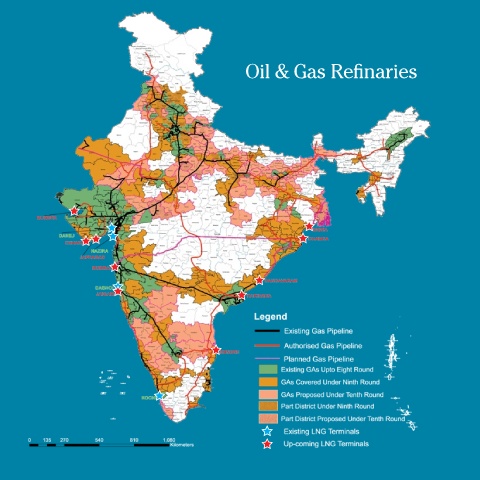 ndIa is the second largest refiner in asia after China and is third 16,800 km long gas pipeline network is under operation in the country