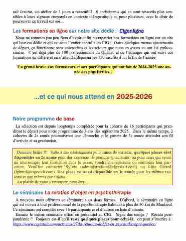 cours. Veuillez contacter Sylvie (administration@cigestalt.com) ou Line Girard