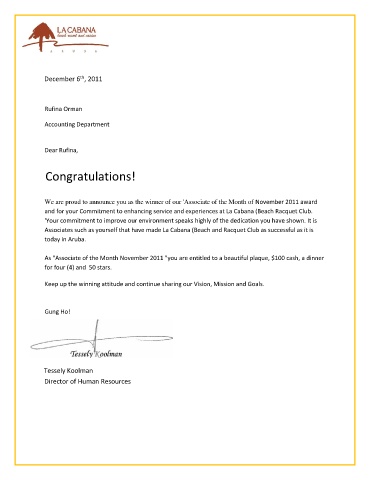 Associates such as yourself that have made La Cabana (Beach and Racquet Club as successful as it is