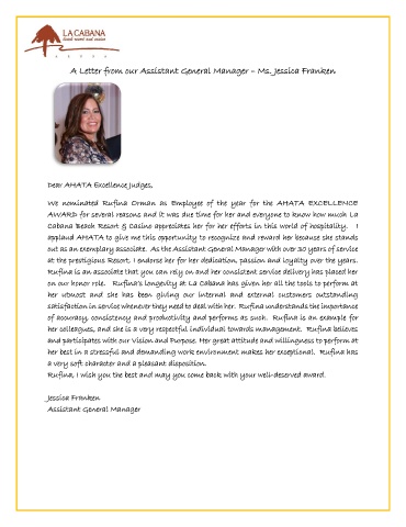 at the prestigious Resort, I endorse her for her dedication, passion and loyalty over the years.