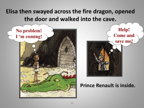 Elisa then swayed across the fire dragon, opened the door and walked into the cave. No problem! Help! I ‘m coming! Come and save me! Prince Renault is inside. 16