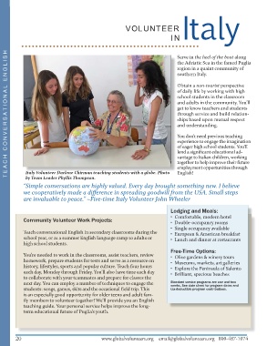 Italy Volunteer Darlene Chirman teaching students with a globe. Photo English!