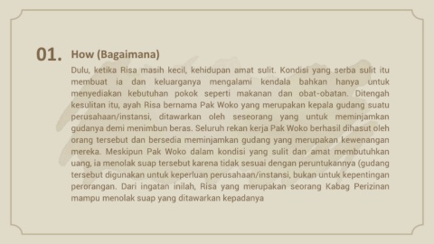 kesulitan itu, ayah Risa bernama Pak Woko yang merupakan kepala gudang suatu