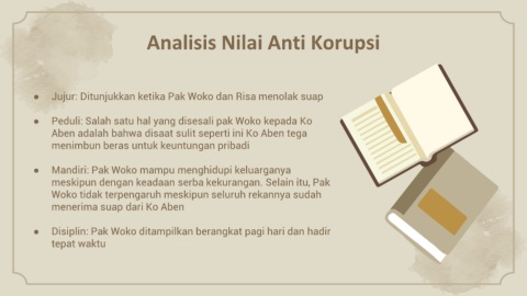 ● Jujur: Ditunjukkan ketika Pak Woko dan Risa menolak suap
