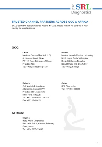SRL Diagnostics network extends beyond the UAE. Please contact our partners in your