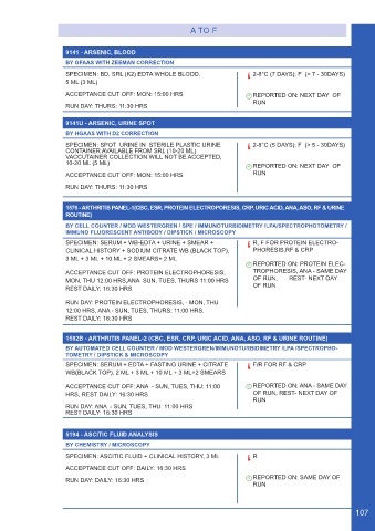 ACCEPTANCE CUT OFF: PROTEIN ELECTROPHORESIS, TROPHORESIS, ANA - SAME DAY