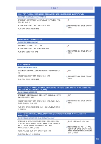 ACCEPTANCE CUT OFF: DAILY: 12:00 HRS FREE TESTOSTERONE ON 2ND
