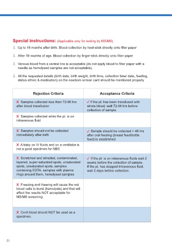 All the requested details (birth date, birth weight, birth time, collection time/ date, feeding,