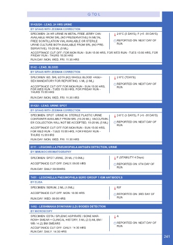ER COLLECTION WILL NOT BE ACCEPTED, 10-20 ML (5 ML) REPORTED ON: NEXT DAY OF
