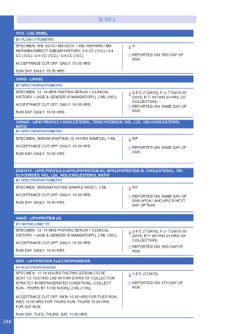 RUN DAY: DAILY: 16:30 HRS RUN APOA1 AND APO B NEXT