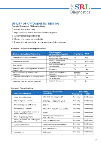 Clinical manifestation/Indication abnormality detectable Karyotyping FISH