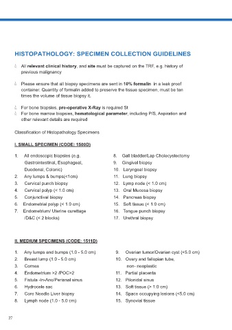 HISTOPATHOLOGY: SPECIMEN COLLECTION GUIDELINES