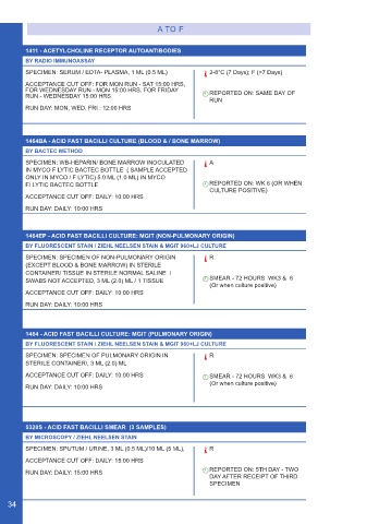 ACCEPTANCE CUT OFF: DAILY: 10:00 HRS SMEAR - 72 HOURS WK3 & 6