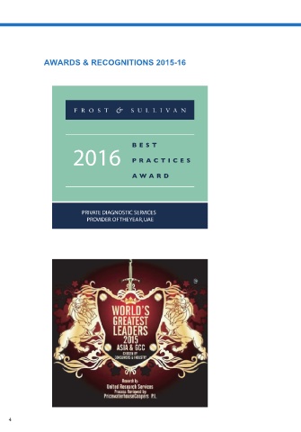 AWARDS & RECOGNITIONS 2015-16 2016 PRIVATE DIAGNOSTIC SERVICES PROVIDER OF THE YEAR, UAE 4
