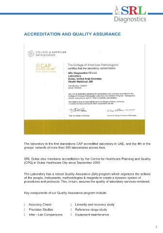 The laboratory is the first standalone CAP accredited laboratory in UAE, and the 4th in the