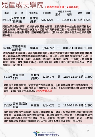 兒童成長學院 (新舊生混班上課;★號為新班)