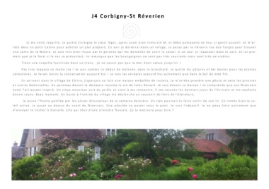 t rête dans un petit Casino pour acheter un plat préparé. Ce soir je dormirai dans un refuge. Je passe par la librairie rue des Forges pour trouver une carte de la Nièvre. Je suis très bien reçue par la gérante qui me demande de venir la saluer si un jour je repassais dans le coin. Je lui pro- et autres demoiselles. Un panneau devant la demeure raconte la vie de Jules Renard. Je suis devant sa maison ! Je compren
