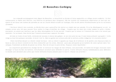 s quaire et me laisse son numéro de portable au cas où j'aurais besoin d'aide sur Corbigny. Elle me dit pleine d'enthousiasme qu'on se recroisera pourpoint, ne seront pas meilleurs que les idées développées en fin de journée. J'espère que la teneur et l'intensité des mots n'en seront pas boue ou dois je choisir à droite et me faire chatouiller par les orties. Décision aussi peu attrayante qu'un