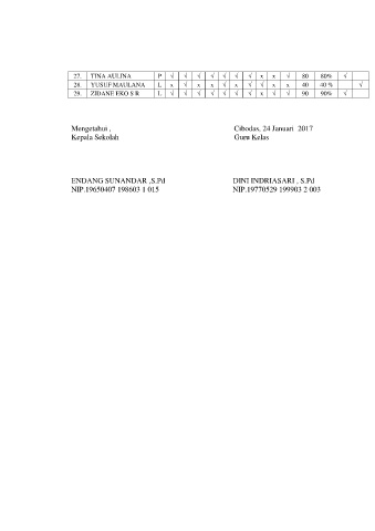 27. TINA AULINA P √ √ √ √ √ √ √ x x √ 80 80% √