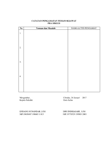 CATATAN PENGAMATAN TEMAN SEJAWAT