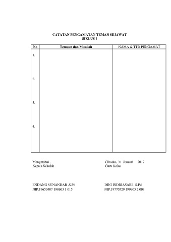 CATATAN PENGAMATAN TEMAN SEJAWAT