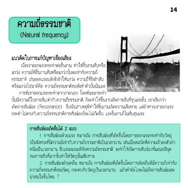 หนึ่งเป็นเวลานาน ซึ่งแรงลมพอดีกับความถี่ธรรมชาติ จะท าให้เกิดการสั่นพ้องที่แอมปลิจูด