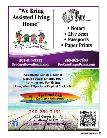 2022_MM-TEXT.qxp_Layout 1 3/25/22 7:46 AM Page 55 “WWee Bring Assisted Living Home” • • NotaryNotary • Live Scan • Live Scan • Passports • Paper Prints 301-8776-9152 240-362-7653 ProCareHommeHealth.com ProCareFingerPrints.com MDMOUNTAINSIDE.COM | 55