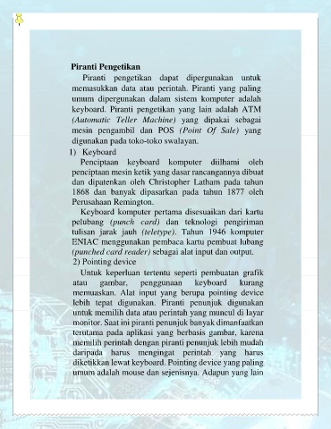 keyboard. Piranti pengetikan yang lain adalah ATM
