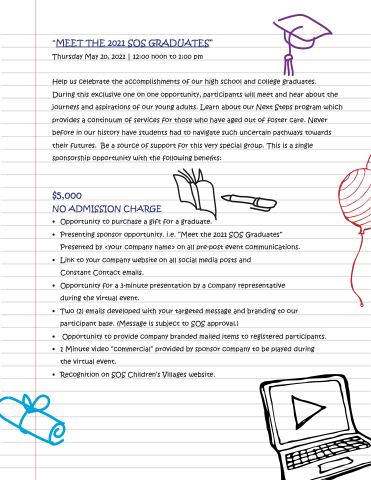 • Presenting sponsor opportunity. i.e. “Meet the 2021 SOS Graduates”