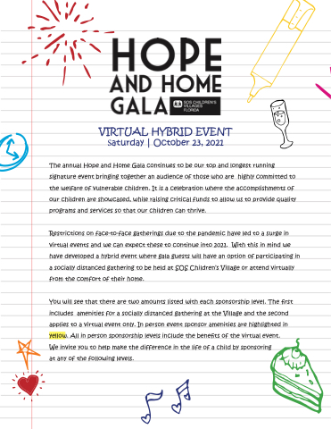 The annual Hope and Home Gala continues to be our top and longest running signature event bringing together an audience of those who are highly committed to the welfare of vulnerable children. It is a celebration where the accomplishments of our children are showcased, while raising critical funds to allow us to provide quality programs and services so that our children can thrive.