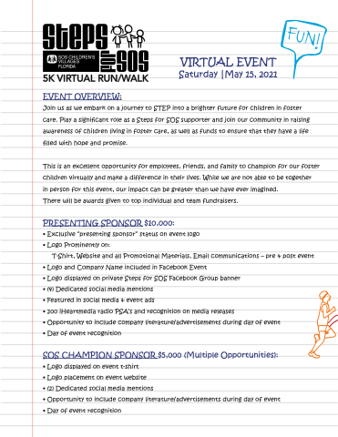 Join us as we embark on a journey to STEP into a brighter future for children in foster care. Play a significant role as a Steps for SOS supporter and join our community in raising awareness of children living in foster care, as well as funds to ensure that they have a life filled with hope and promise.