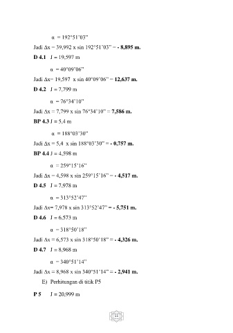 Jadi ∆x = 39,992 x sin 192°51’03” = - 8,895 m.