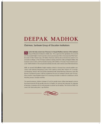 B ased in the holy ancient city of Varanasi, Dr. Deepak Madhok, chairman of the Sunbeam