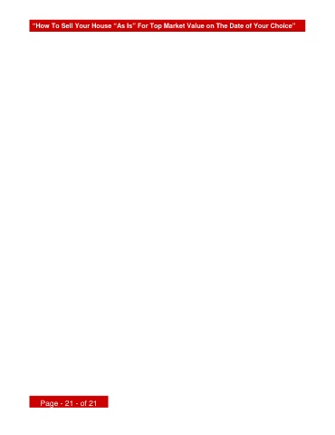 “How To Sell Your House “As Is” For Top Market Value on The Date of Your Choice” Page - 21 - of 21