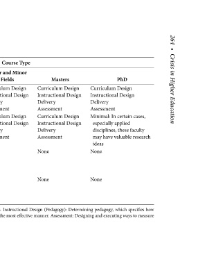 Course Type Major and Minor Fields Curriculum Design Instructional Design Delivery Assessment Curriculum Design Instructional Design Delivery Assessment None None Curriculum Design: Defining curriculum content and performance standards. Instructional Design (Pedagogy): Determining pedagogy, which specifies how kno