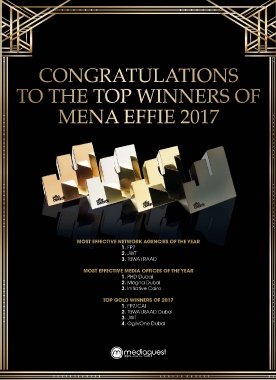 MOST EFFECTIVE NETWORK AGEN CIES OF THE YEAR 1. FP7 2. JWT 3. TBWA\RAAD MOST EFFECTIVE MEDIA OFFICE S OF THE YEAR 1. PHD Dubai 2. Magna Dubai 3. Initiative Cairo TOP GOLD WINNERS OF 2017 1. FP7/CAI 2. TBWA\RAAD Dubai 3. JWT 4. OgilvOne Dubai
