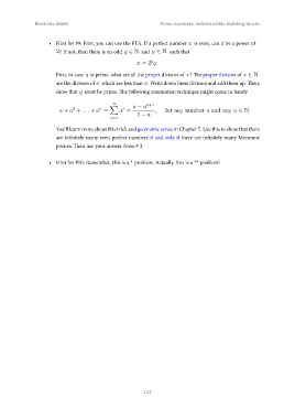 • Hint for #9: First, you can use the FTA. If a perfect number x is even, can it be a power of