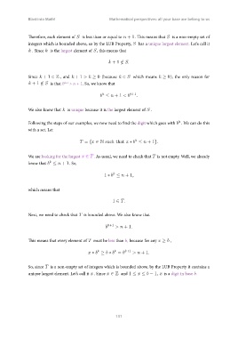 integers which is bounded above, so by the LUB Property, S has a unique largest element. Let’s call it