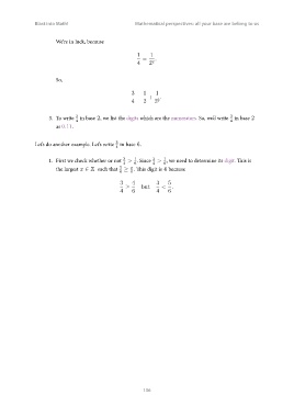 3. To write in base 2, we list the digits which are the numerators. So, we’d write in base 2