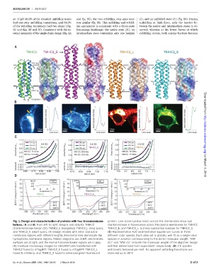 Fig. 1. Design and characterization of proteins with four transmembrane protein. Line scans (yellow lines) across the membranes show sub- http://science.sciencemag.org/