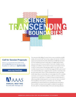 Session proposals for the 2019 AAAS At thisAnnual Meeting,we lookforways science is bringing together people,