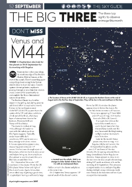 nature of our skies. Þ The location of Venus at 04:30 BST (03:30 UT) as it passes the Beehive Cluster at the end of