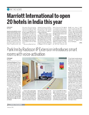 sion, New Delhi is the first prop- (IoT) and voice-enabled technolo- in housekeeping efficiencies, en- Once checked-in, guests can preliminary rollout in January