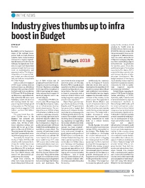 power required for high-speed the budget has laid great empha- ager, Southeast Asia and India, launch of Operation Green will Union Budget 2018 bodes well