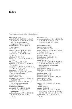 ability 3, 4, 8, 9, 24, 33–37, 44, 61, 63, awareness; attention 1, 15, 18, 21, 26, 29,