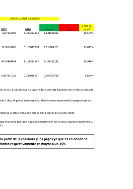 PERIODO PROMEDIO DE COBRO: las cuentas por cobrar se estan tardando en su pago por mas de 7 dias, lo que no sindica que los clientes estan reportando los pagos fuera de