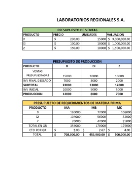 PRESUPUESTO DE REQUERIMIENTOS DE MATERIA PRIMA
