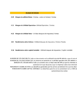 MARGEN DE UTILIDAD OPERATIVA: se presento un aumento en la utilidad operativa del 15% debido a que las ventas aumentaron un 20%
